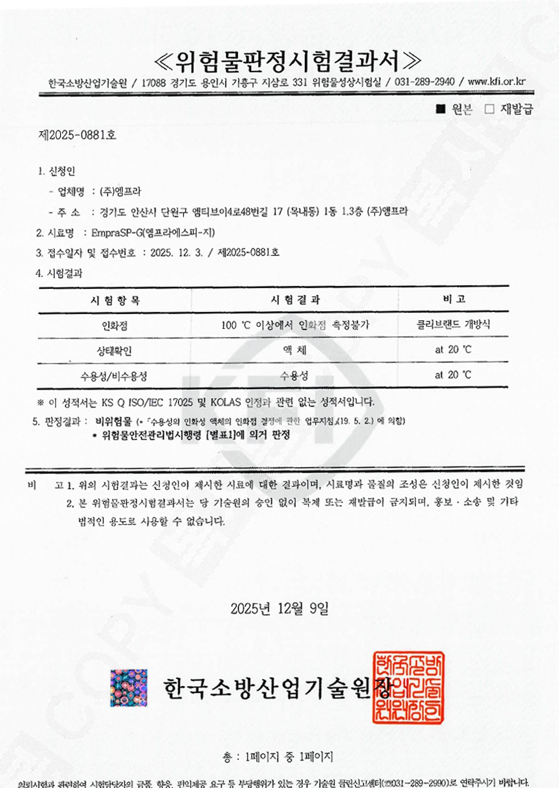 위험물판정시험결과서 EmpraSP-G