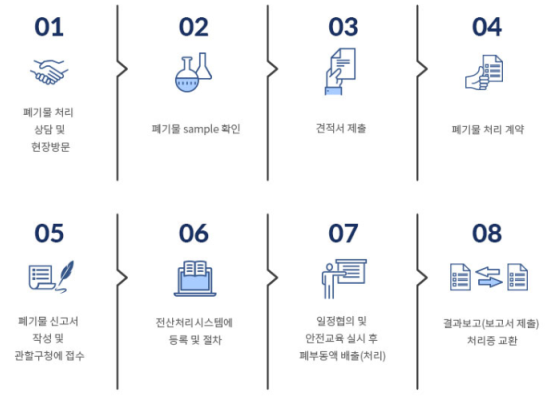 폐부동액은 지정폐기물이므로 관련 시행규칙 제16조 및 법제25조의 3항 규정에 의거 폐처리 후 폐처리증명을 비치하여야 하고 폐기물 배출자는 당해 사업장에서 발생되는 폐기물을 직접처리하거나 위탁처리 할 수 있으며, 동법 시행규칙 제28조 6항 규정에 따른 폐기물의 수집, 운반, 보관 및 처리에 관한 구체적 기준 및 방법을 준수하여야 한다.