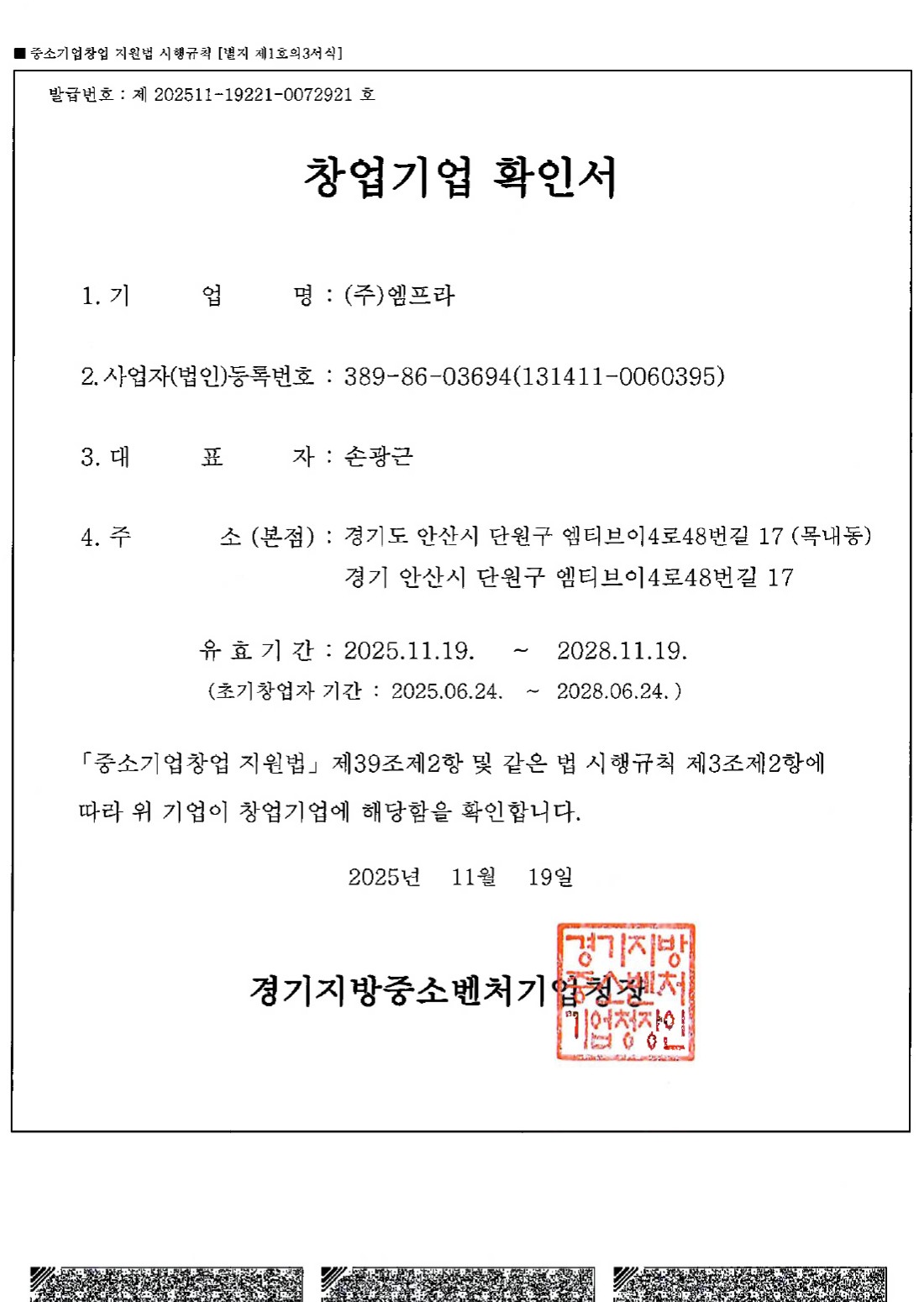 창업기업확인서