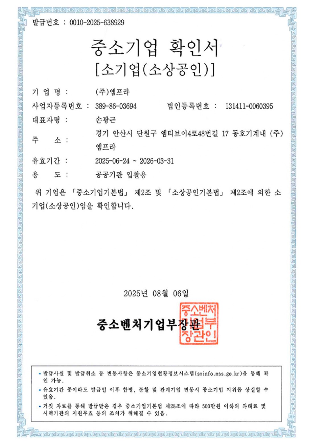 중소기업 확인서