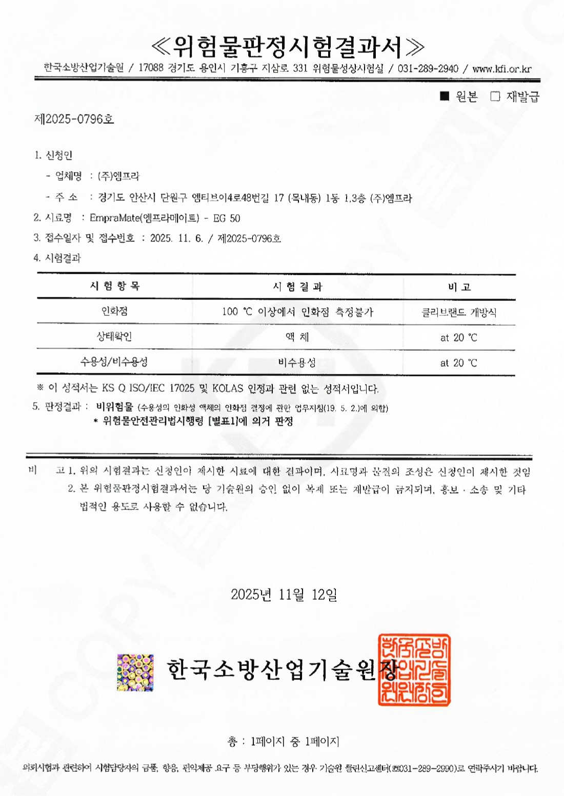위험물판정시험결과서 EmpraMate-EG 50